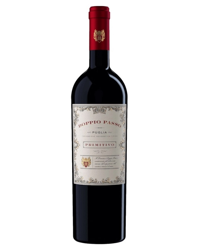Doppio Passo, Primitivo, Puglia IGT — красное полусухое вино с ярким, сбалансированным и округлым вкусом и элегантным, фруктовым ароматом. Вино производится из винограда сорта Примитиво, выращенного на виноградниках региона Пулия. Винификация проходит в чанах из нержавеющей стали со строгим температурным контролем. Вино является прекрасным сопровождением блюд из красного мяса с соусами, жареного мяса, дичи и пернатой дичи, сыров средней выдержки.